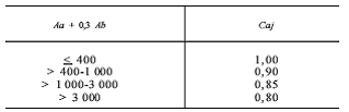 4 - Para os prédios cuja afectação seja a de estacionamento coberto, individual ou colectivo, fechado ou aberto, o coeficiente de ajustamento de áreas (Caj) é aplicado às áreas brutas privativa e dependente e é variável em função dos escalões de área, seguindo a mesma metodologia de cálculo do n.º 1, de acordo com a seguinte tabela: